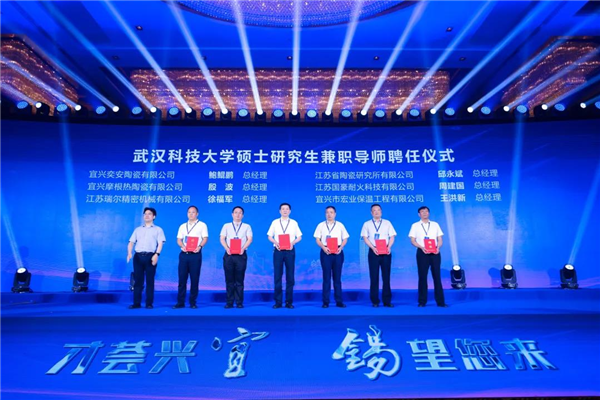 會上,我公司董事長、總經理邱永斌被聘為武漢科技大學碩士研究生兼職導師,同時公司也與武漢科技大學簽訂“超輕多級孔陶瓷碳化載體材料的關鍵技術及應用”的產學研合作項目。